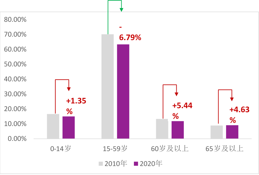 圖:我國(guó)人口普查年齡結(jié)構(gòu)分布對(duì)比