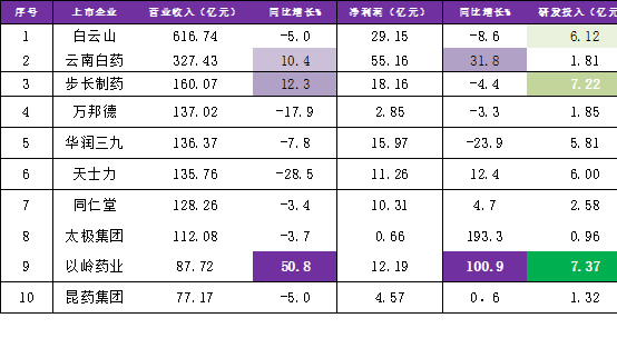 表:A股中藥企業(yè)營(yíng)業(yè)收入TOP企業(yè)