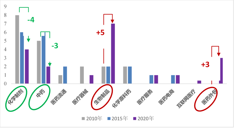 圖:不同階段TOP20市值企業(yè)賽道分布變化
