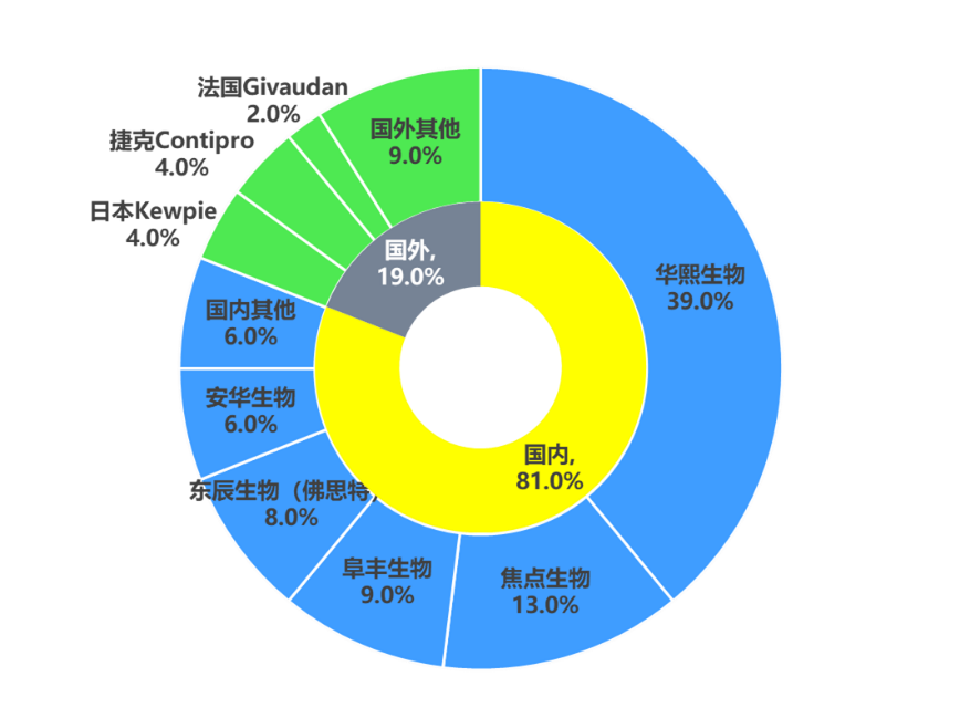 圖:2019年全球透明質(zhì)酸原料市場(chǎng)格局(按銷量)