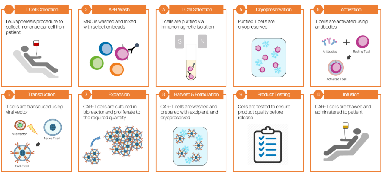 圖:CAR-T細(xì)胞產(chǎn)品治療過程