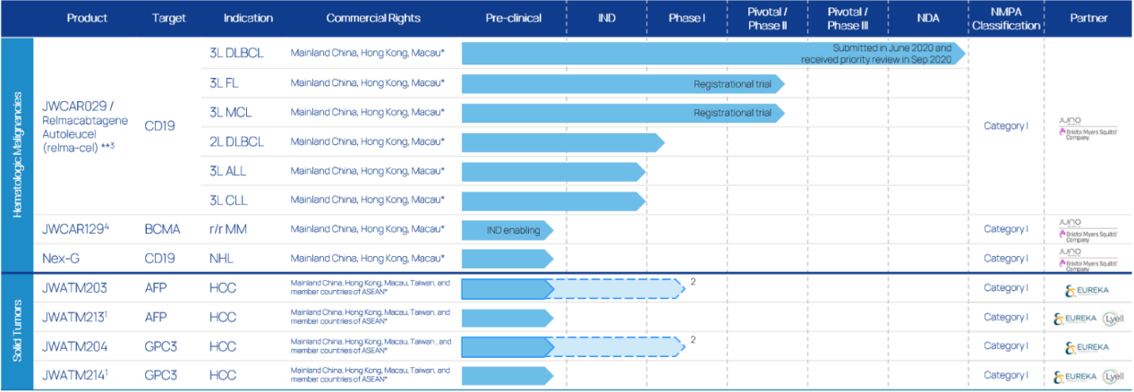圖:藥明巨諾產(chǎn)品研發(fā)管線