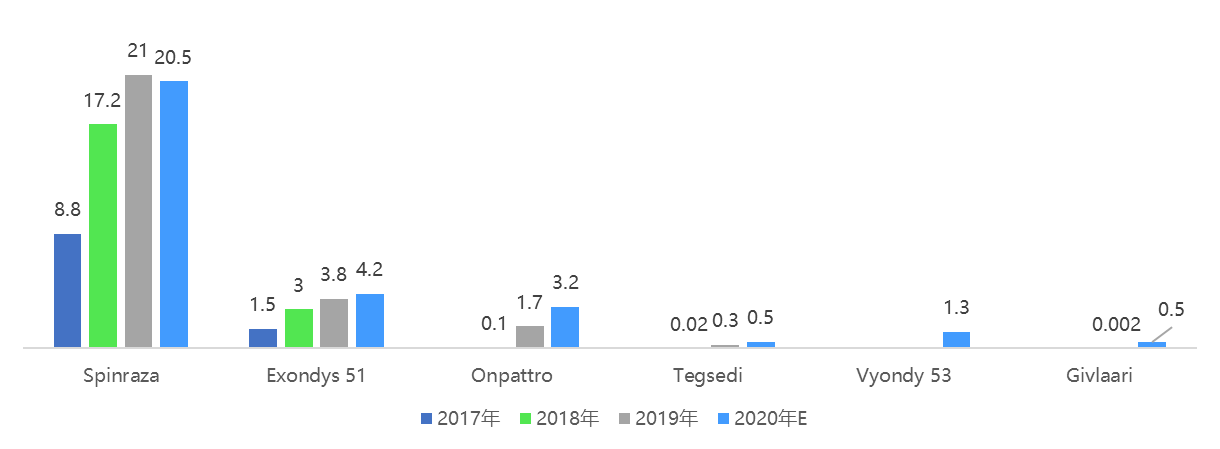 2020年全球小核酸藥物銷售額在30億美元左右。(根據(jù)下圖內(nèi)容,補(bǔ)充個(gè)體藥物的銷售情況)雖然小核酸藥物售價(jià)昂貴,但由于目前上市的產(chǎn)品主要適應(yīng)癥為罕見(jiàn)病,針對(duì)的患者群體數(shù)量有限,小核酸藥物銷售額還未出現(xiàn)爆發(fā)式增長(zhǎng)。隨著患者群體更廣泛的適應(yīng)癥藥物開(kāi)發(fā)取得進(jìn)展,預(yù)計(jì)2025年全球小核酸藥物銷售額將突破100億美元;到2030年我國(guó)小核酸藥物市場(chǎng)也將達(dá)到100億元。