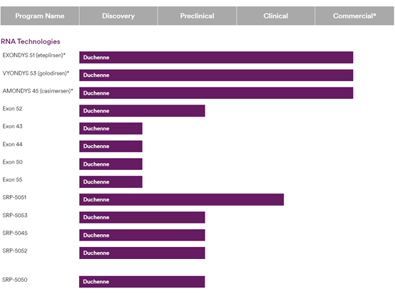 圖:Sarepta產(chǎn)品研發(fā)管線