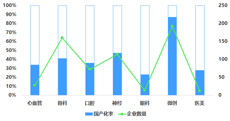 圖:高值耗材細分領(lǐng)域國產(chǎn)化率及企業(yè)數(shù)量