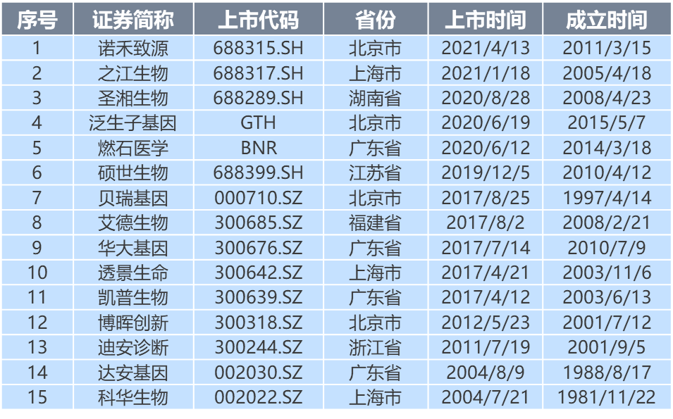 圖:分子診斷領(lǐng)域主要上市企業(yè)