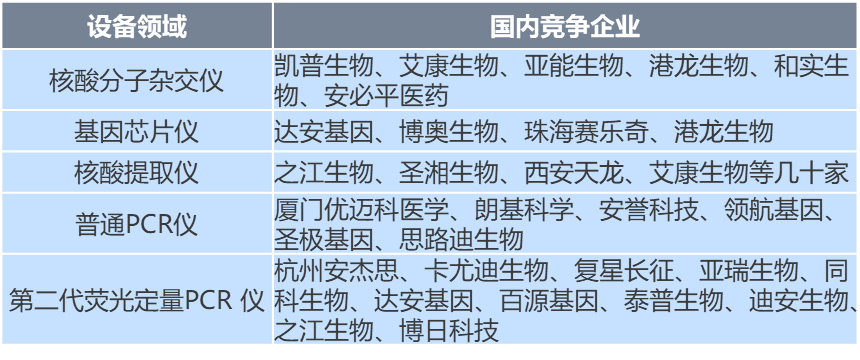 圖:分子診斷儀器設(shè)備中國產(chǎn)替代較好的領(lǐng)域的主要生產(chǎn)企業(yè)